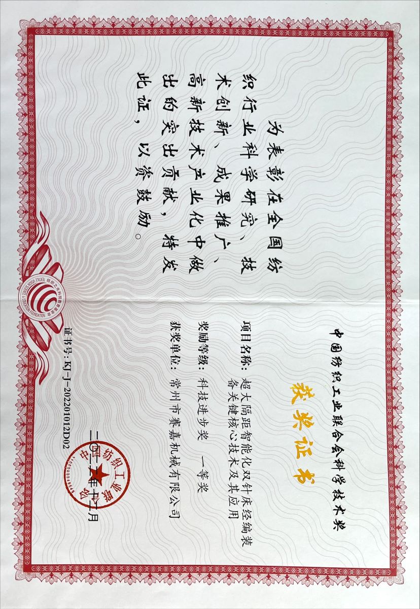 • 中國(guó)紡織工業(yè)聯(lián)合會(huì)科技進(jìn)步一等獎(jiǎng)
